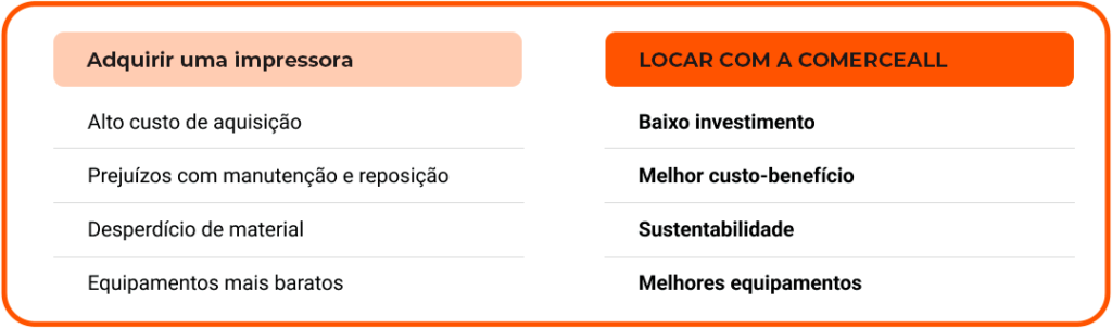 Conheça a solução em locação de impressoras da COMERCEALL, e veja por que alugar é mais barato e inteligente do que comprar.